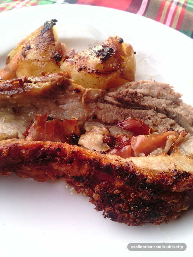 Kalup premazati margarinom, pobrašniti i izliti smjesu.Peći u zagrijanoj pećnici na 180 stupnjeva oko 30 min.