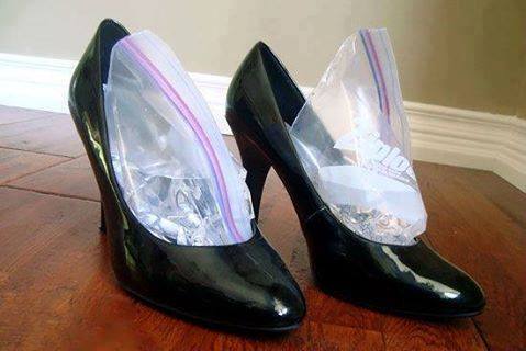 Uzmite dve plastične kese koje mogu da se zatvore. Sipajte u njih 1/4 vode. Stavite ih u obuću, pa cipele u zamrzivač.
